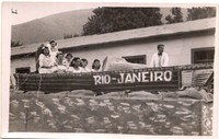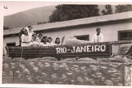 Grupo de mujeres, al parecer candidatas a reina en las Fiestas Primaverales, aparecen dentro de un carro alegórico cuyo nombre es "Rio-Janeiro". Atrás, se observa parte de una casa quinta y un cerro.