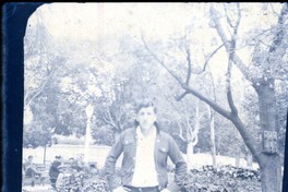 [Hombre en la plaza Vergara] [fotografía]. [Viña del Mar, Chile] : [entre 1940 y 1950]. 1 fotografía : negativo sobre papel; 9 x 7 cm. .