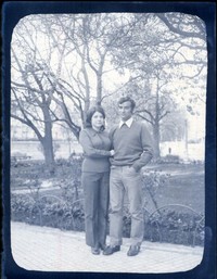 [Mujer y hombre en plaza Vergara] [fotografía]. [Viña del Mar, Chile] : [entre 1940 y 1950]. 1 fotografía : negativo sobre papel ; 9 x 7 cm. .