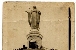 [Mujer, hombre y Vírgen del Cerro San Cristóbal] [fotografía]. Santiago : entre 1920 y 1930]. 1 fotografía : monocromo, gelatina sobre papel fibra ; 14 x 9 cm .