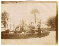 [Mujeres con sombrero en un jardín de una plaza] [fotografía]. Talca : 1912. 1 fotografía : monocromo, gelatina sobre papel fibra ; 9 x 12 cm .