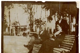 [Personas en una banca de un parque] [fotografía]. Los Andes: 1912. 1 fotografía : monocromo, gelatina sobre papel fibra ; 9 x 11 cm .