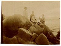 [Mujeres y niña en roquerío] [fotografía]. [Chile] : [191-?]. 1 fotografía : monocromo, gelatina sobre papel fibra ; 5 x 6 cm .