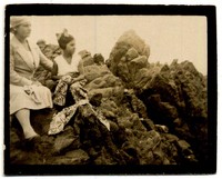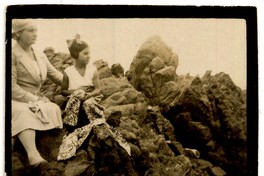 [Mujer y niña en roquerío de un balneario] [fotografía]. [Chile] : [entre 1940 y 1950]. 1 fotografía : monocromo, gelatina sobre papel fibra ; 4 x 5 cm .