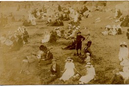 [Grupo de personas en balneario de Constitución] [fotografía]. Constitución : 1913. 1 fotografía monocromo, gelatina sobre papel fibra ; 9 x 14 cm .