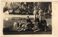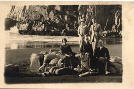 [Personas en roquerío de balneario de Constitución] [fotografía] Constitución : [1920?]. 1 fotografía : monocromo, gelatina sobre papel fibra ; 9 x 14 cm .