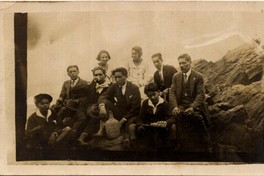 [Personas en roquerío de un balneario] [fotografía]. [Chile] : [entre 1920 y 1930]. 1 fotografía : monocromo, gelatina sobre papel fibra ; 9 x 14 cm .