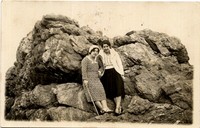 [Mujeres en roquerío de un balneario] [fotografía]. [Chile] : [entre 1930 y 1940]. 1 fotografía : monocromo, gelatina sobre papel fibra ; 9 x 14 cm .