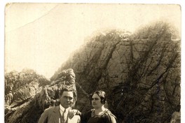 [Mujer y hombre de pie en un roquerío] [fotografía]. [Chile] : [entre 1920 y 1930]. 1 fotografía : monocromo, gelatina sobre papel fibra ; 14 x 9 cm .