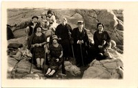 [Familia en roquerío de un balneario] [fotografía]. [Chile] : [entre 1920 y 1930]. 1 fotografía : monocromo, gelatina sobre papel fibra ; 9 x 14 cm .