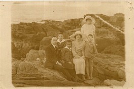 [Familia en roquerío de un balneario] [fotografía]. [Chile] : [entre 1920 y 1930]. 1 fotografía : monocromo, gelatina sobre papel fibra ; 9 x 14 cm .