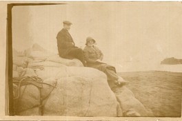 [Mujer y hombre en roquerío de balneario en Constitución] [fotografía]. Constitución : 1932. 1 fotografía : monocromo, gelatina sobre papel fibra ; 9 x 14 cm .