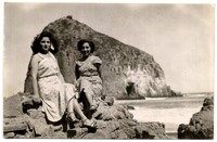 [Mujeres en roquerío de un balneario] [fotografía]. Constitución : [entre 1940 y 1950]. 1 fotografía : monocromo, gelatina sobre papel fibra ; 9 x 14 cm .