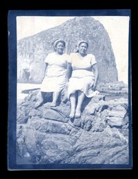 [Mujeres descalzas sobre roquerío de un balneario] [fotografía]. [Constitución? : entre 1930 y 1950]. 1 fotografía : negativo sobre papel ; 9 x 7 cm. .