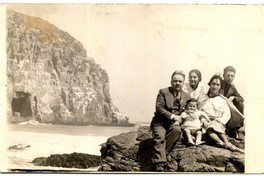 [Familia en roquerío de balneario en Constitución] [fotografía].