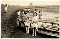 [Mujeres sentadas sobre un bote] [fotografía]. [Chile] : [entre 1920 y 1930]. 1 fotografía : monocromo, gelatina sobre papel fibra ; 9 x 14 cm .