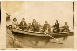 [Personas al interior de un bote] [fotografía]. [Chile] : [entre 1930 y 1940]. 1 fotografía : monocromo, gelatina sobre papel fibra ; 9 x 14 cm .