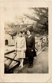 [Mujeres jovenes en un jardín] [fotografía] / [Fotografía de Salvador Callejas Cortés]. [Zapallar?] : [entre 1920 y 1930]. 2 fotografía : monocromo, gelatina sobre papel fibra ; 14 x 9 cm .