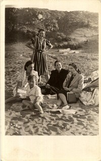 [Mujeres y niño de picnic en balneario de Pichilemu] [fotografía]. Pichilemu : [entre 1930 y 1940]. 1 fotografía : monocromo, gelatina sobre papel fibra ; 14 x 9 cm .