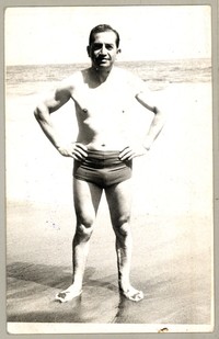 [Hombre en balneario de Pelluhue] [fotografía]. Pelluhue : 1970. 1 fotografía: monocromo, gelatina sobre papel fibra ; 14 x 9 cm. .