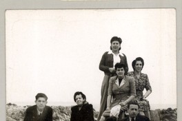 [Familia en roquerío de balneario en Pichilemu] [fotografía]. Pichilemu : [entre 1930-1940]. 1 fotografía : monocromo, gelatina sobre papel fibra ; 14 x 9 cm .