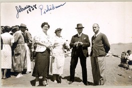[Grupo de personas en balneario de Pichilemu] [fotografía]. Pichilemu : 1938. 1 Fotografía : monocromo, gelatina sobre papel fibra ; 9 x 14 cm .