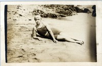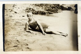 [Mujer con traje de baño recostada en balneario] [fotografía]. [Chile] : [entre 1920 y 1930]. 1 fotografía : monocromo, gelatina sobre papel fibra ; 9 x 14 cm .