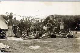 [Grupo de personas junto a las carpas de un balneario] [fotografía].