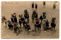 [Danza colectiva en un balneario] [fotografía]. [Chile] : 1926. 1 fotografía : monocromo, gelatina sobre papel fibra ; 9 x 14 cm .