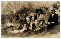 [Familia reunida a los pies de un cerro] [fotografía]. Constitución : [entre 1910 y 1920]. 1 fotografía : monocromo, gelatina sobre papel fibra ; 9 x 14 cm .