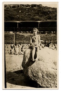 [Niña sentada en una roca de un balneario] [fotografía]. [Chile : 1[entre 1920 y 1930]. 1 fotografía : monocromo, gelatina sobre papel fibra ; 14 x 9 cm .