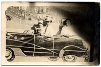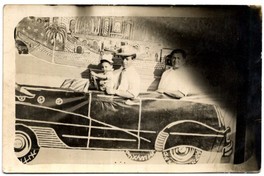 [Hombres y un niño en automovil pintado en telón de fondo] [fotografía]. [Chile : entre 1930 y 1940]. 1 fotografía : monocromo, gelatina sobre papel fibra ; 9 x 14 cm .