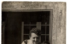 [Mujer adulta junto a niña pequeña subida en un muro de una casa] [fotografía] / [Fotografía de Francisco Bley]. Chillán : 1957. 1 fotografía : monocromo, gelatina sobre papel fibra ; 14 x 9 cm .