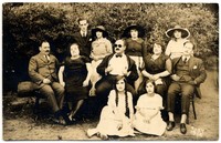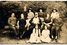 [Grupo de personas sentadas de espalda a arbustos] [fotografía] / [Fotografía de Francisco Bley]. [Chile] : 1922. 1 fotografía : monocromo, gelatina sobre papel fibra ; 9 x 14 cm .
