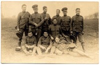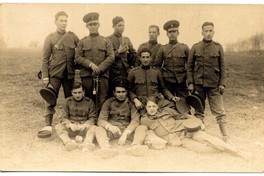 [Uniformados en zona descampada] [fotografía]. [Chile : entre 1930 y 1940]. 1 fotografía : monocromo, gelatina sobre papel fibra ; 9 x14 cm .
