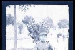 [Retrato de uniformado sentado en sillón de mimbre en un parque] [fotografía]. [Chile, entre 1920 y 1930]. 1 fotografía : negativo sobre papel ; 14 x 9 cm .