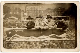 [Hombres en embarcación pintada en telón de fondo] [fotografía]. [Chile] : Casa Hans Frey , [entre 1920 y 1930] . 1 fotografía : monocromo, gelatina sobre papel fibra ; 9 x 14 cm. .