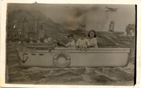 [Niña y niños detrás de embarcación pintada en telón de fondo] [fotografía]. [Cartagena? : entre 1920 y 1930]. 1 fotografía : monocromo, gelatina sobre papel fibra ; 9 x 14 cm. .