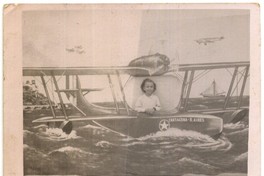 Niña aparece detrás de la avioneta "Cartagena-B. Aires" correspondiente a la pintura de un telón de fondo utilizado por el fotógrafo minutero, en el que además se observan otras embarcaciones y aviones.