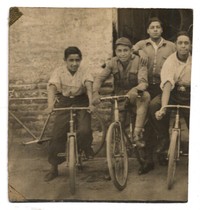 [Jovenes retratados en sus bicicletas] [fotografía]. [Chile : entre 1930 y 1940]. 1 fotografía : monocromo, gelatina sobre papel fibra ; 8 x 7 cm. .