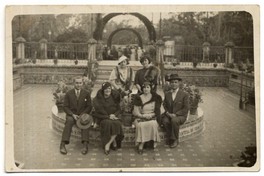 [Personas sentadas en una pileta circular con maseteros] [fotografía]. [Chile : entre 1910 y 1920]. 1 fotografía : monocromo, gelatina sobre papel fibra ; 9 x 14 cm. .
