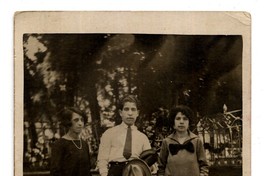 [Mujeres y hombre con parque de fondo] [fotografía]. [Chile : entre 1910 y 1920]. 1 fotografía : monocromo, gelatina sobre papel fibra ; 14 x 9 cm. .
