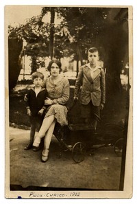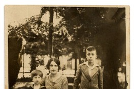 [Mujer junto a dos niños en Plaza de Curicó] [fotografía]. Curicó : [entre 1930 y 1932]. 1 fotografía : monocromo, gelatina sobre papel fibra ; 13 x 9 cm. .