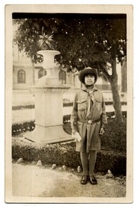 [Estudiante con pañoleta al cuello en un jardín público] [fotografía]. Quillota : Casa Hans Frey, 1928. 1 fotografía : monocromo, gelatina sobre papel fibra ; 14 x 9 cm. .