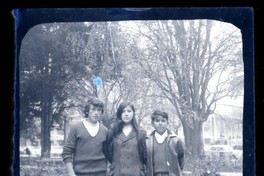 [Tres jovenes retratados en una plaza] [fotografía] [Fotografía de Luis Juica]
