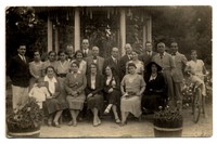 [Grupo de personas en un jardín] [fotografía]. [Chile : entre 1920 y 1930]. 1 fotografía : monocromo, gelatina sobre papel fibra ; 9 x 14 cm. .