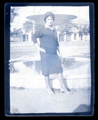 [Mujer delante de una pileta] [fotografía]. [Chile : entre 1930 y 1950]. 1 fotografía : negativo sobre papel ; 9 x 7 cm. .