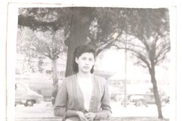 [Mujer joven en un parque] [fotografía]. [Chile : entre 1940 y 1960]. 1 fotografía : monocromo, gelatina sobre papel fibra ; 13 x 9 cm. .