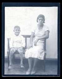 [Mujer y niño de la familia Lucero sentados en una banca] [fotografía] / [Fotografía de Julio Lucero]. [Chile] : 1936. 1 fotografía : negativo sobre papel ; 9 x 7 cm. .