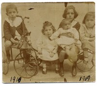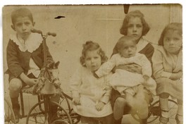 [Niñas y niño en bicicletas] [fotografía]. [Chile] : 1919. 1 fotografía : monocromo, gelatina sobre papel fibra ; 9 x 10 cm. .